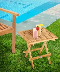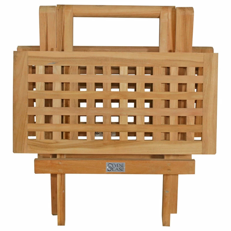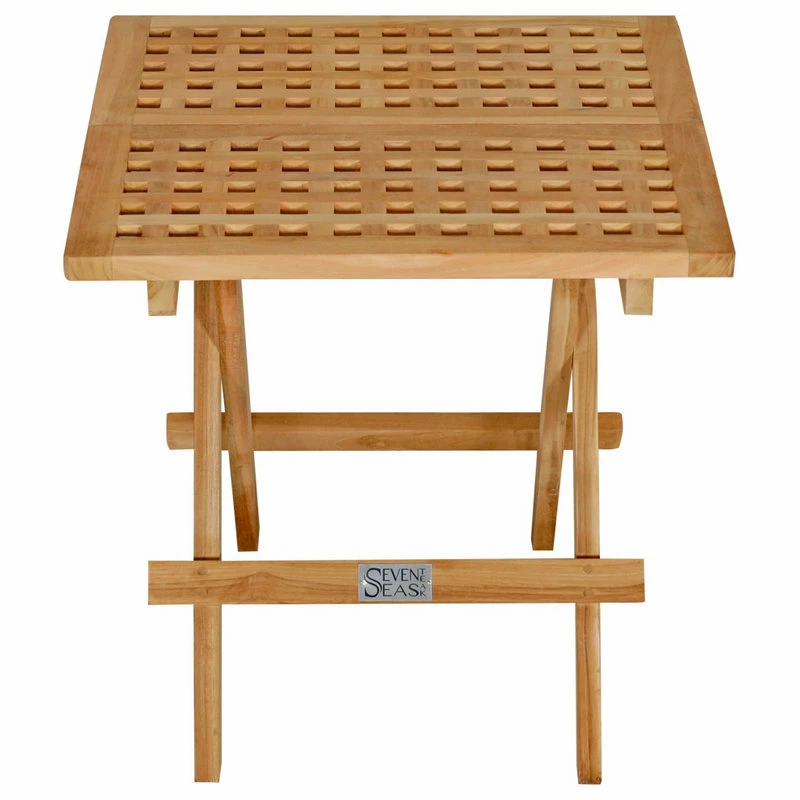 This small square folding picnic/side table from Seven Seas Teak is as durable as it is convenient. This table folds completely flat and includes a handle for portability. Made from solid weather resistant teak wood, this small table can be used at the beach, poolside or on patios and decks. For a small teak wood picnic table that’s made to last, look no further than Seven Seas Teak. This table comes fully assembled.