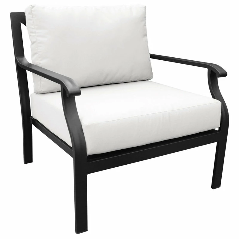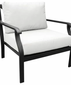 Revitalize your outdoor experience with the kathy ireland Homes & Gardens Madison Ave. Collection by TK Classics. This collection features clean; sleek matte black Onyx aluminum frames supporting our exclusive white Snow cushions with black piping. Suited for any occasion or gathering; the fine details such as scrolling arms and beautifully designed backs will impress and bring new life in your outdoor arrangement. Home decor has never felt this good. Features: Cushions – 6 inches thick for a luxurious look and feel Cushion Covers – Washable and zippered for easy cleaning (air dry only) Feet Levelers – Height adjusters for uneven surfaces that won’t mar your patio or deck Table Tops – Cast aluminum with a durable powder coated finish Fully Assembled – Ready to use and enjoy ; Custom hand woven all-weather; high density; PE (polyethylene) wicker ; Strong rust resistant; powder coated aluminum frame for maximum durability ; Commercial grade construction ; No Sag solid wicker bottoms with extra flexible strapping providing long-lasting suspension ; Perfect for outdoor use in all climates ; Elegant design includes angled backs ; Includes seat and plush back cushions for maximum comfort ; New rust-resistant; powder coated feet which are color matched with table tops All sets will come with Onyx aluminum frames and Snow covers on the cushions.