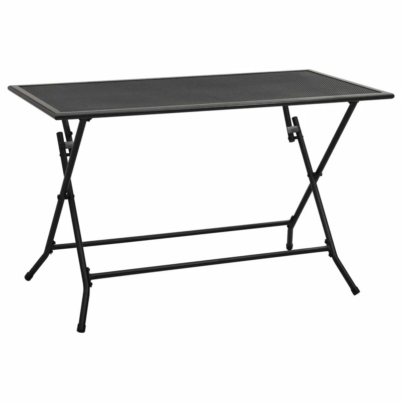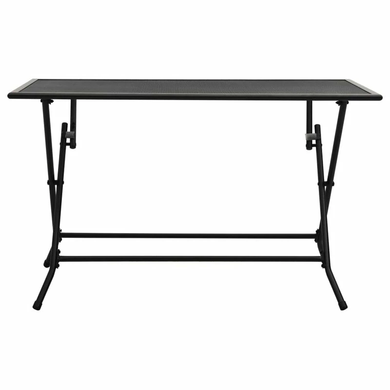 Transform your outdoor seating area with this mesh folding table. You can place this table along with your favorite patio chairs to host dinner or afternoon tea with your friends or family. This table is made of sturdy steel with an e-coating and powder coating. The metal table is extra strong, durable, and weather-resistant and rust-resistant. It is also easy to clean and maintain thanks to the finish. The mesh design gives the set an elegant look. The mesh tabletop offers a sturdy space for drinks, snacks, etc. It can be easily folded away when not in use.