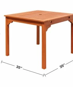 Made from 100% Eucalyptus – a very durable Hardwood, this table can stand up to all kinds of changes in the weather. The cores of the Eucalyptus is very dense; thereby it quickly repels water, and its natural oil combats and repels wood eating insects.