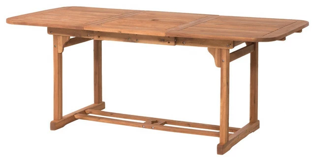 Ideal for an outdoor dining experience, this acacia wood dining table will create plenty of room needed for you and your family. With a hide-away butterfly leaf and an umbrella hole setup for you to set up your umbrella for shade on a hot summer day, youโll enjoy having this table on your patio or deck for weekend meals outside. The classic design and gorgeous wood grain finish of acacia wood create a stylish and durable outdoor table, you can rely on.